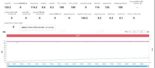 首先是负载较低的《王者荣耀》,游戏内支持开启极高分辨率+120帧模式,一局游戏下来平均帧率维持在120.2帧,画面流畅不卡顿。