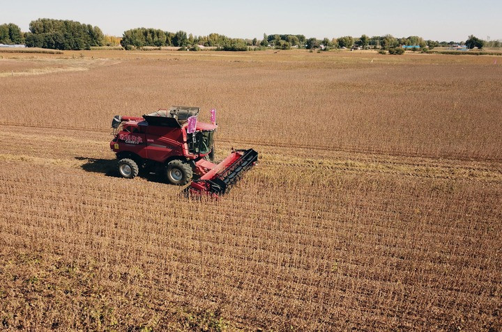 9月29日奇侠优配,在内蒙古自治区兴安盟扎赉特旗音德尔镇,大型机械在收获大豆。(新华社)